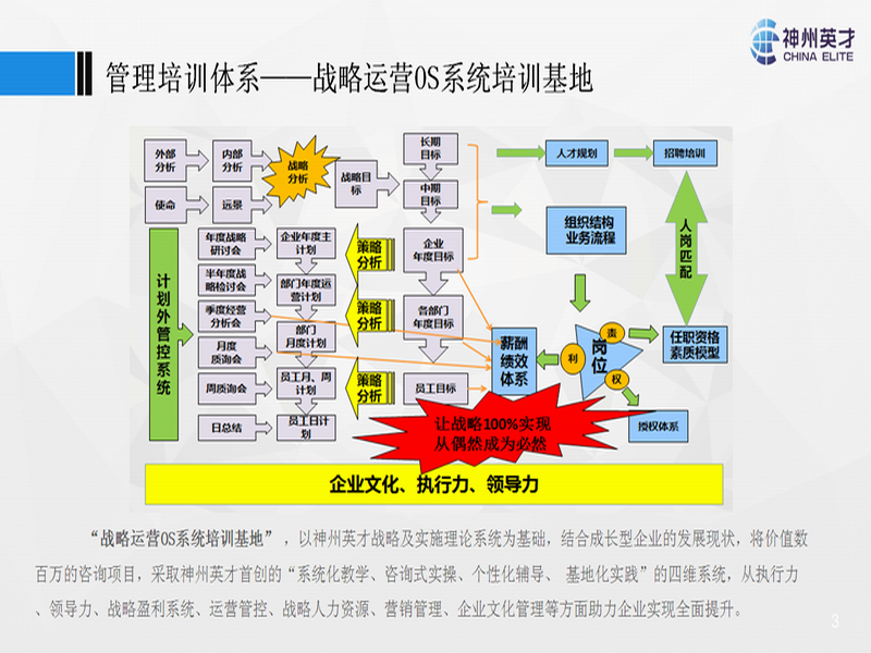 神州英才致力于中國成長型企業的正規化、國際化、持續化,專注于為中國成長型企業提供戰略規劃、業務運營管理、品牌營銷、人力資源管理、企業文化等管理咨詢與培訓服務,同時通過多 層次資本服務平臺為中小企業提供企業上市、企業并購、企業投融資等相關服務。