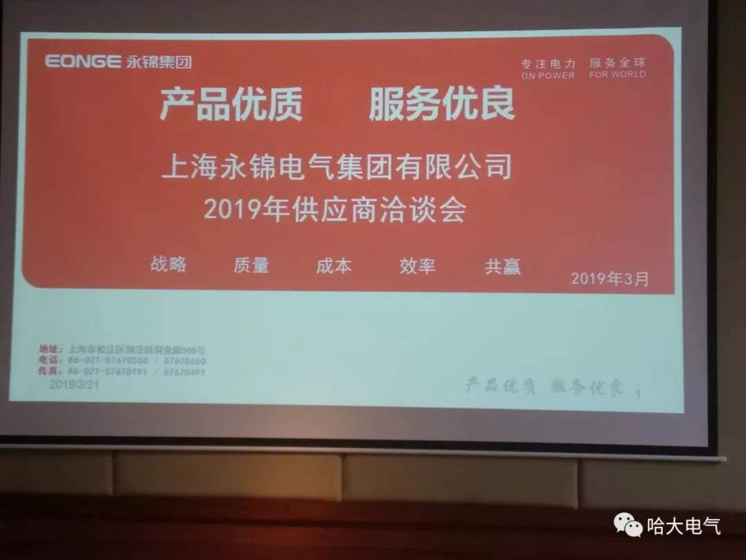 上海永錦電氣集團有限公司2019年供應商洽談會的主題是:戰(zhàn)略、質量、成本、效率、共贏。哈大電氣定將秉承“合作共贏”的理念,牢記客戶囑托。