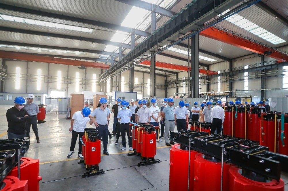 會議結束后,全體與會代表來到山東哈大電氣有限公司八角工業園廠區及鐵抗新車間考察指導,圖為與會代表在展示廳了解哈大的發展歷程、資質及空抗產品、鐵抗產品。