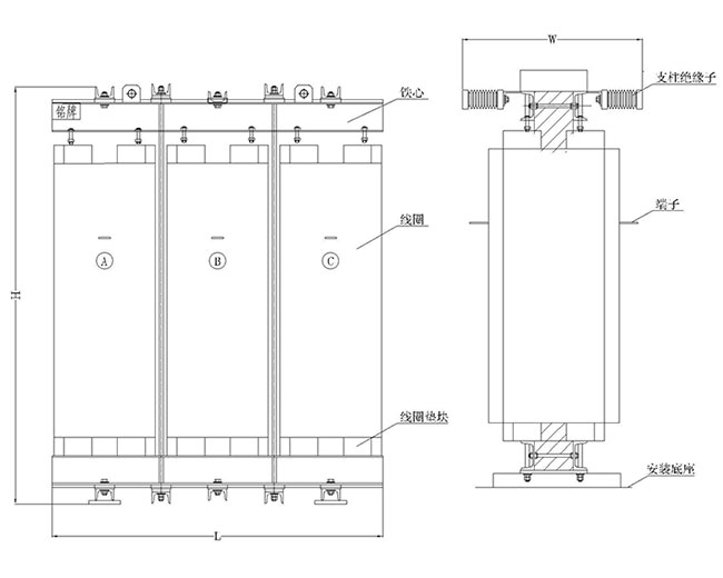 我公司生產的鐵心串聯電抗器,主體結構包括:鐵心和線圈兩大部分。