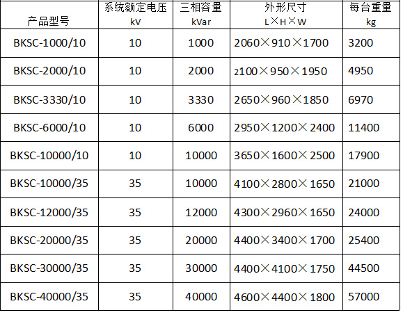 6.常用型號并聯電抗器參數一覽表